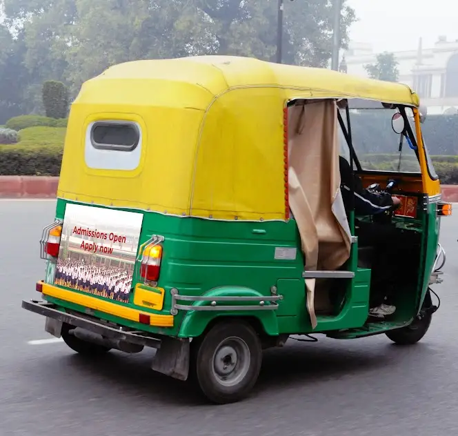- The Backs of Auto-Rickshaws or Taxis: Mobile advertisements that move through neighborhoods and ensure your school’s visibility across different parts of the city.